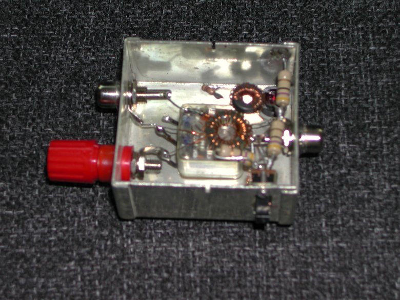 I connettori J1 e J2, per avere dimensioni ridotte, sono delle prese RCA da pannello che ho provveduto a saldare al contenitore per una maggiore robustezza meccanica (attenti a non fondere l’isolante interno!), chi volesse, puo' sostituirli con delle prese da pannello SO239 o BNC, se le dimensioni del contenitore ve lo permettono.